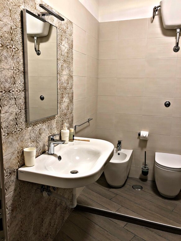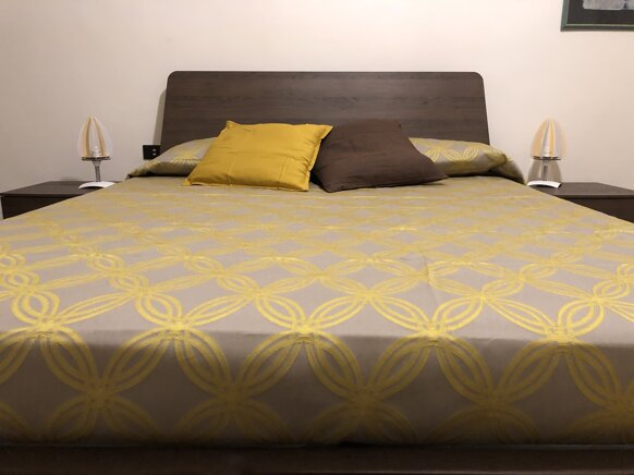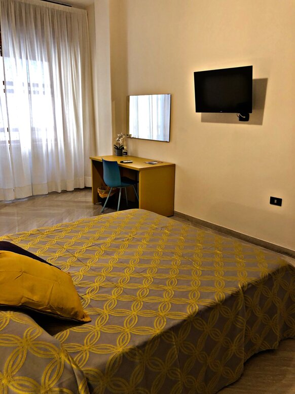 La stanza "DENARI" di 21mq può accogliere fino a 3 persone in un letto matrimoniale ed uno aggiunto. Inoltre, c'è spazio a sufficienza per inserire una culla. Dispone di un ampio bagno privato esterno con lavabo, WC, bidet, doccia, asciugacapelli, asciugamani, sapone e shampoo.